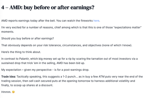 - Yesterday morning I told you AMD would turn in great numbers then take a dive. (See #4)