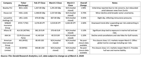 Speaking of which and also as I suggested would be the case, stock prices for those same insurance companies have dropped since the closure reflecting concerns over potential claims, reinsurance tightening up, and disrupted premiums. (Read)