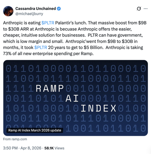 Saying Anthropic is eating Palantir's lunch is like saying Netflix is eating Cisco's lunch because both use the internet. 🤦